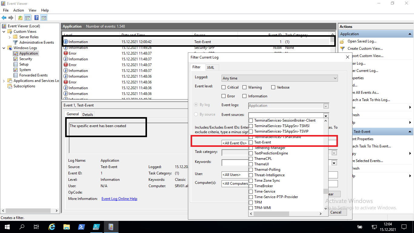 Just before the creating eventlog, I want to show you there is no source which i havent been created on my eventlog viewer as name Test-Event.