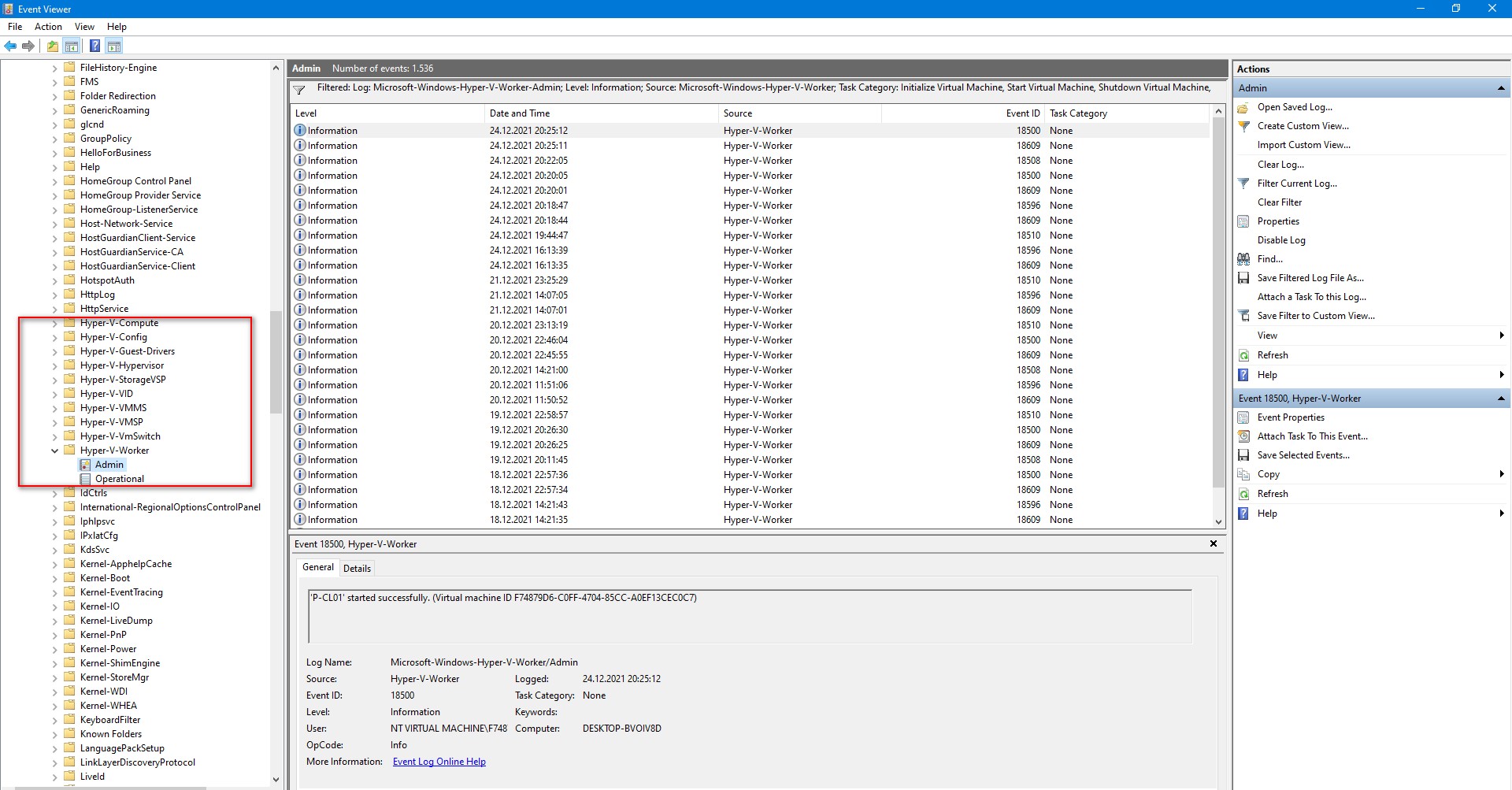 18500 Hyper-v ‘Virtual Machine name’ started successfully. (Virtual machine ID)