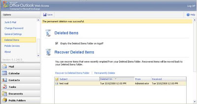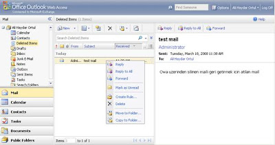Yanlışlıkla silinen yada daha öncesinden ihtiyacımız olmayıpta sildiğimiz mailleri geri getirmemiz gereken durumlar gerekebilir. Eğer Maillerimiz pst olarak local bilgisayarımızda değilde Exchange üzerinde tutuluyorsa aşağıdaki yöntemle owa (Outlook Web Access) üzerinden silinen maili geri getirebiliriz.