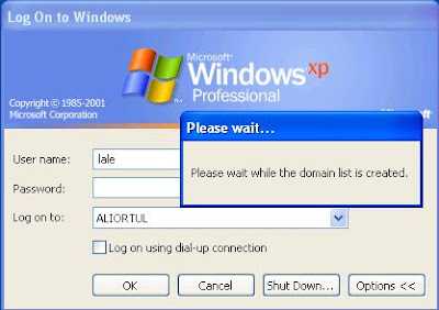 Bilgisayarımızı açtığımızda listeden domaini yada kendi bilgisayarımızı seçtiğimizde opsiyonlar listelenirken “Please wait while the domain list is created” ( Domain listesi yaratılırken lütfen bekleyin) diye uyarı verir ve kitlenme yaşanır bu kitlenmeyi çözmek için klavyeden