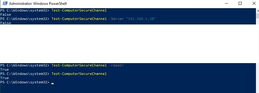 Test-ComputerSecureChannel -Server "192.168.1.10" |