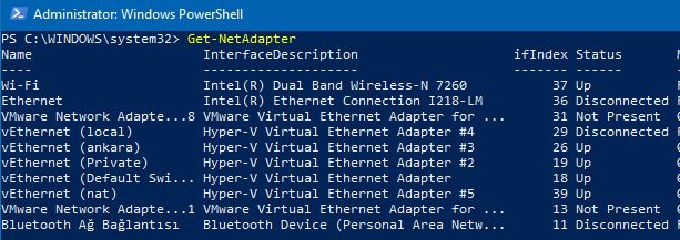Powershell ile network enable disable etme işlemi oldukça basit bir hal aldı. Eskiden netsh komutuyla cmd yani command prompt ile yaptığımız işlemi Powershell ile oldukça basit bir komutla yapabiliyoruz. Şimdi sırasıyla Windows sunucu veya client üzerinde, komut satırıyla network enable disable etme işlemini nasıl yapabileceğimize bakalım.
