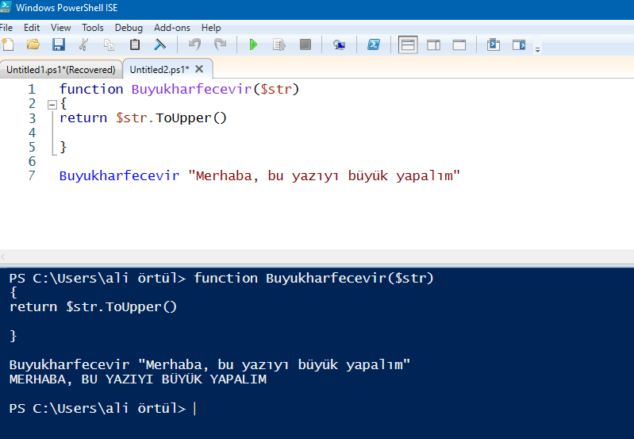 Merhaba powershell’de basit function (fonksiyon) yazmak.