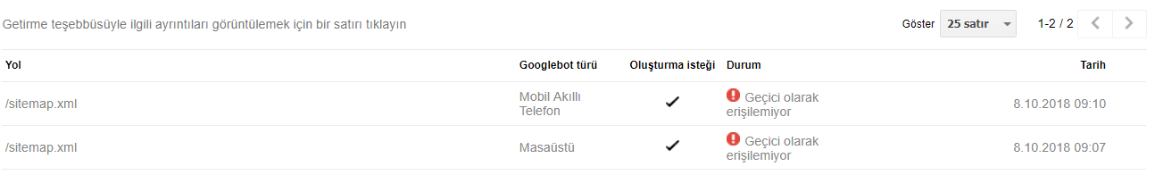 Search Console ‘da Google gibi getir dediğinizde. Geçici olarak erişilemiyor hatası alıyorsanız.