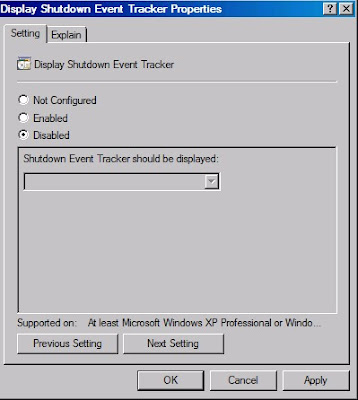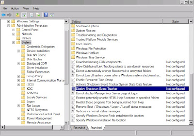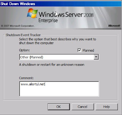 Shutdown Event Tracker (Kapama Olayı İzleyicisi) Windows Server 2003 ve 2008 de serverı kapattığımızda bize neden kapama işlemi yaptığımızı soran bir windows uygulaması.