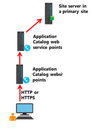 Web service point rolü, uygulama bilgilerini almak için site sunucusuyla iletişim kurar. Website point rolü ise Uygulama Kataloğu’nun arabirimidir ve bu rol, web service point rolüne bağlıdır.