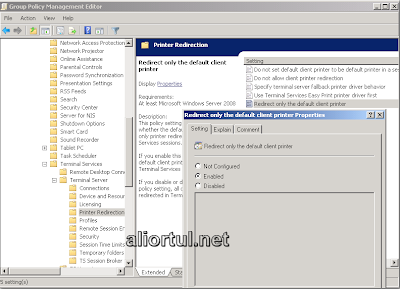 Terminal Server Easy Print özellğini group policy ile aktif etmemiz gerekiyor, burda hatırlatılması gereken bir önemli noktada easy print özelliğini kullanmak için RDP 6.1 ve üzeri remote desktop versiyonu kullanmalıyız.