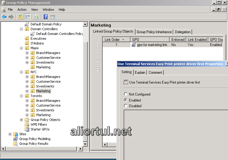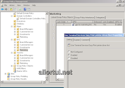 Terminal Server Easy Print özellğini group policy ile aktif etmemiz gerekiyor, burda hatırlatılması gereken bir önemli noktada easy print özelliğini kullanmak için RDP 6.1 ve üzeri remote desktop versiyonu kullanmalıyız.