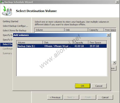 2-      Back up to a volume : Bu seçenekte ise sihirbaz sadece local olarak takılı bulunan diskleri kontrol ederek karşımıza getiriyor. Ve formatlama işlemi yapmıyor.