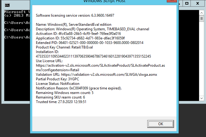 Bu sayede Windows Server deneme süresini uzatmış olduk. Unutmayın ki bu yöntem bir lisanslama değildir. Özellikle commercial kullanımda windows server ürünlerinizin lisanslı olduğundan emin olmalısınız.