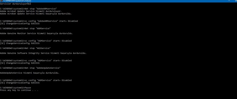 Başta istediğim şeye dönecek olursan adobe’un çalıştırdığı servisleri belirlemek ve bu servislerin hepsini disabke edip açılışta başlamasını engellemek.