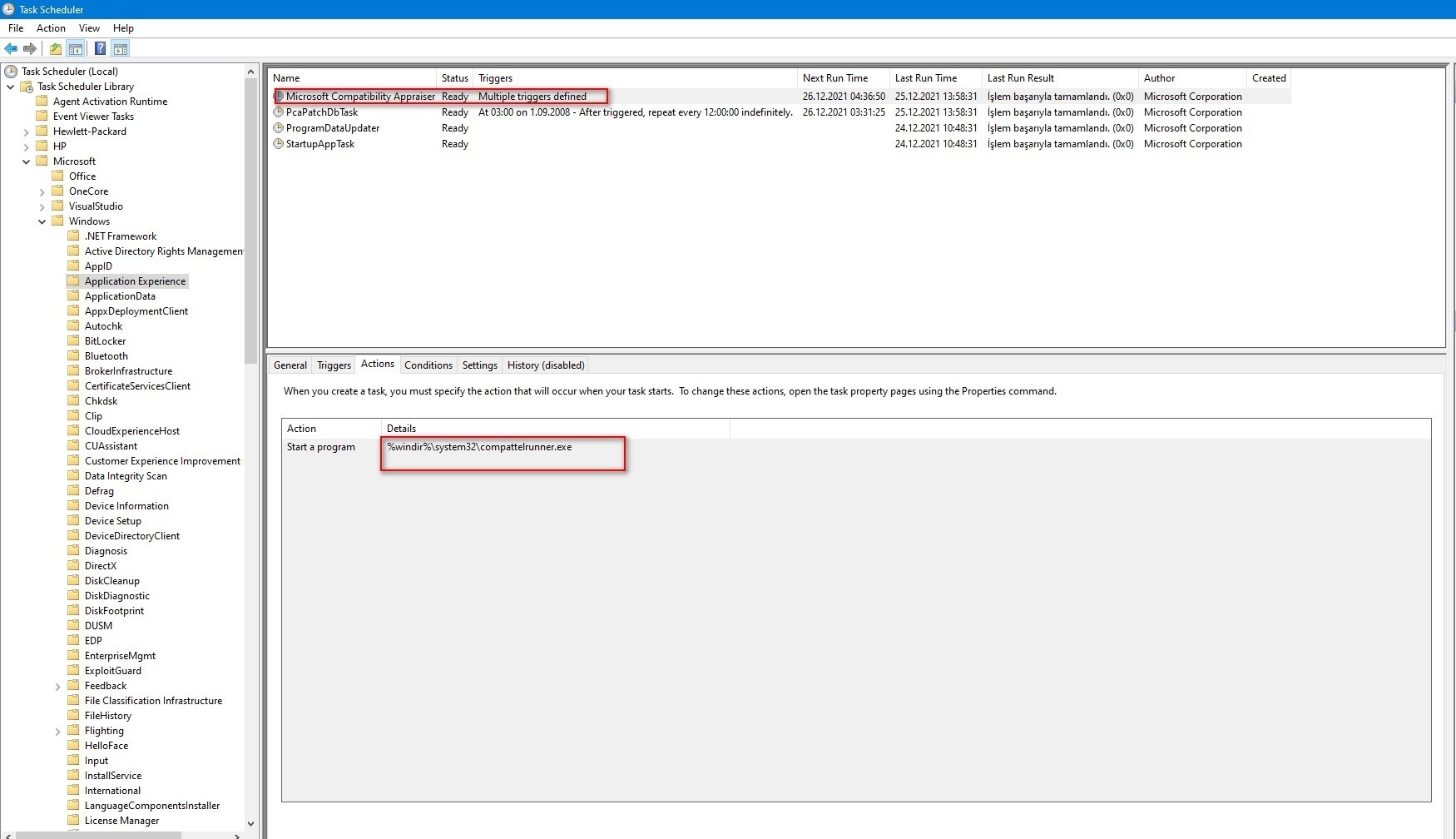 - Application Experience klasöründe Microsoft Compatibility Appraiser göreceksiniz.