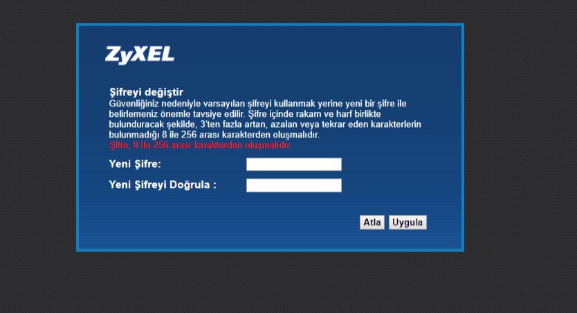 Şifreyi girdikten sonra modem için sizden yeni bir şifre belirlemenizi isteyecek. Yeni şifrenizi kendinize göre belirleyebilirsiniz.